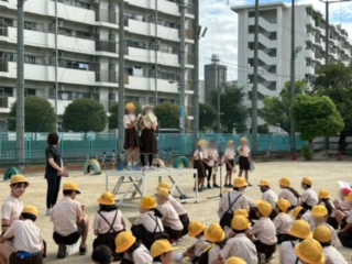 上の学年の子どもが、下の学年の子どもを呼び寄せ、