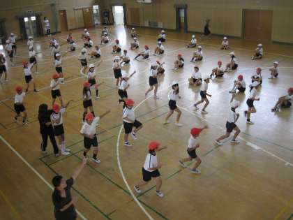 6年生は中学生になると体育でダンスの学習をすることになります。今日は区役所のお世話でスタジオAXからプロダンサーのMIOさんとCHIEKOさんが来て教えてくださいました。初めに二人のデモンストレーションを見て、自分たちにできるのかなあと不安がっていた子どもたちも、わかりやすく教えてもらううちにだんだん上手にできるようになってきて笑顔が見られました。保護者の方も約10名参加して一緒に踊ったり、応援したりしてくださいました。15日(木)に2回目の練習をして、17日(土)2時間目の土曜授業でその成果を見ていただきます。お楽しみに!