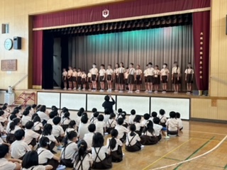 朝の全校集会で、後期の代表委員の紹介がありました。