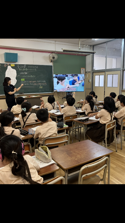 理科では、ヒトはどのように体を動かしているのかを勉強しました。人体模型を動かしたり、実際に自分の体を動かしたりして関節や筋肉・骨の動き方を確かめました。