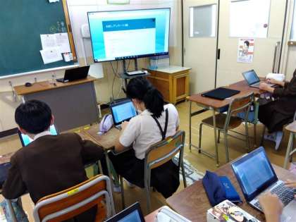 パソコンの「forms」を使って、クイズとアンケートの作成体験をしました。