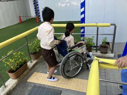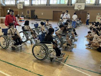 車いすの体験をしました。自走体験と介助体験を行いました。普段意識していない数センチメートルの段差でも車いすだと不便なことに気づきました。誰もが安心して暮らせるように相手のことを思いやり、優しさを持って行動することが大切だと考えました。