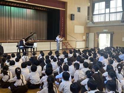 音楽鑑賞会では、「Everly」さんに演奏していただきました。「Everly」さんは、日本全国でコンサートしながら、東京オリンピック聖火式イベントでも演奏されたグループです。