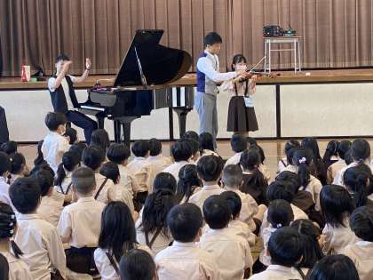 子どもたちは、ピアノとバイオリンの音色をめいっぱい楽しみました。