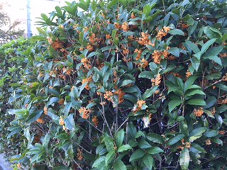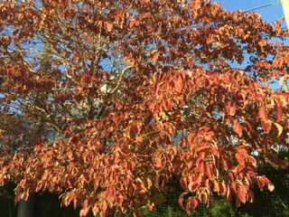学校の木々も少しずつ秋色に染まってきました。キンモクセイから甘い香りがして、ミカンがたわわに実り、ハナミズキに赤い実がなって葉も色づいてきました。