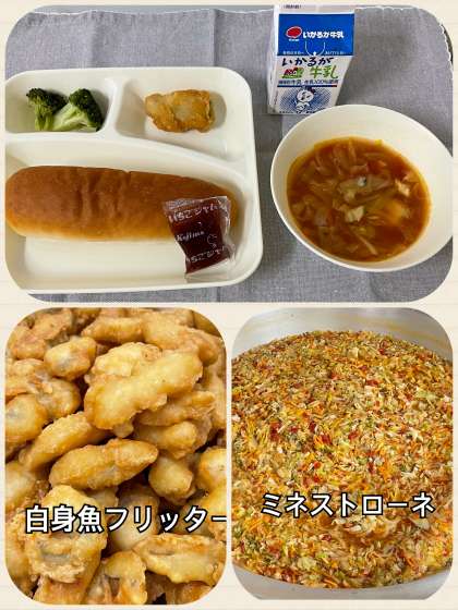 ※白身魚フリッター ※ミネストローネ ※ブロッコリーのサラダ