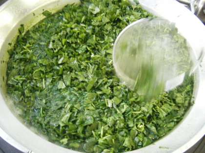 写真右はほうれん草を塩茹でしている様子です。