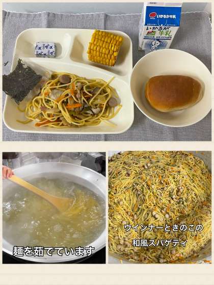 ※ウインナーときのこの和風スパゲッティ ※焼きとうもろこし