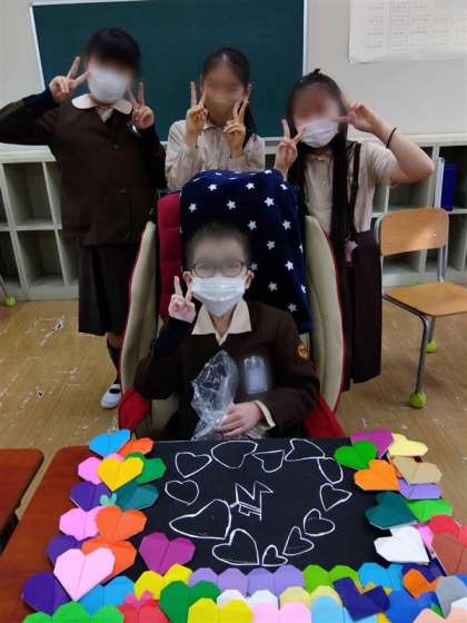 長く欠席していた友だちも、力を合わせて共同作品を完成させました!