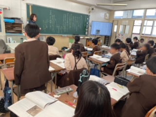 登場人物の気持ちを書かれている情景から類推し、発表し合って読み深めます。