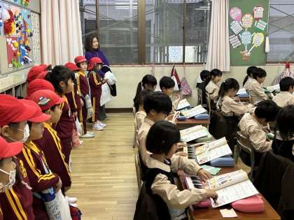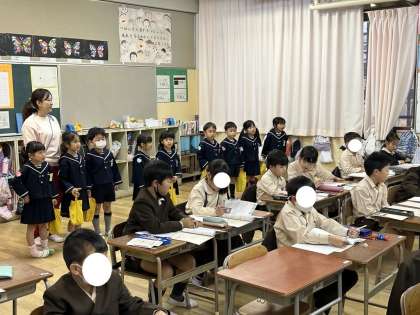 鶴見幼稚園から100名を超える園児さんが小学校の様子を見学に来てくれました。