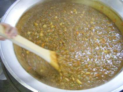 写真中央はカレーを煮込んでいるようです。