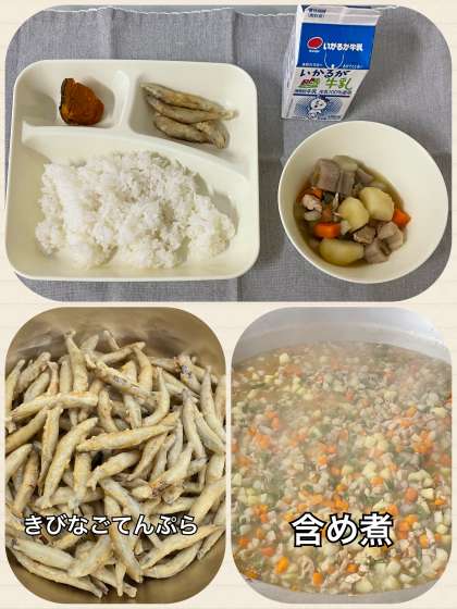 きびなごは体長が10cmくらいのちいさな魚で、カルシウム・たんぱく質・ビタミンを多く含んでいます。きびなごてんぷらは頭から丸ごと食べることができ、骨まで食べるとカルシウムの摂取量が何倍にもなります。成長に必要な骨が作られる時期ですのでカルシウムをしっかりとり、丈夫な骨を作りましょう。