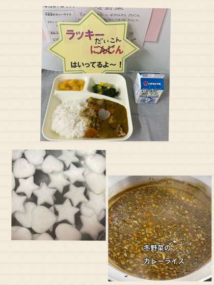 ※冬野菜のカレーライス ※ブロッコリーとコーンのサラダ