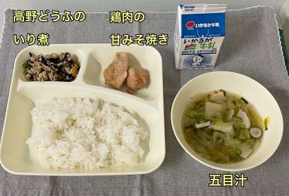 ※鶏肉の甘みそ焼き ※五目汁 ※高野どうふのいり煮
