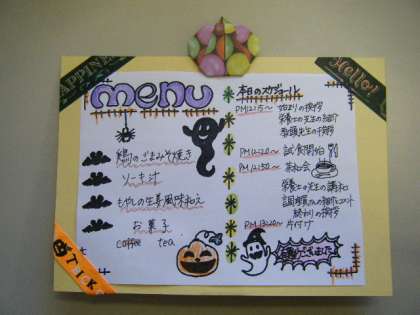 写真右は試食会で保健給食委員会より配られた素敵なメニュー表です。
