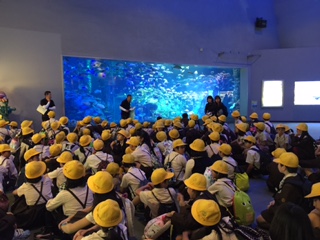 10月27日(火)修学旅行1日目午後は信楽を出発して午後2時過ぎに鳥羽水族館に着きました。グループできれいな魚を見学したり、家族へのお土産を買ったりして楽しみました。午後5時頃に宿舎の扇芳閣に着くと「すごくきれい!」とびっくりしていました。全員元気でこれから開舎式をします。