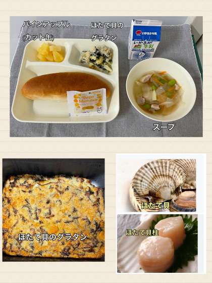 ※ほたて貝のグラタン ※スープ ※パインアップル(カット缶)