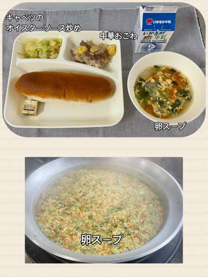 ※中華おこわ ※卵スープ ※キャベツのオイスターソースいため