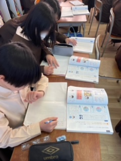 資料から調べ、考えたことをノートにまとめ、友達と話し合って分析したことを共有したり深めたりします。