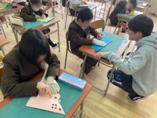 カッターを上手に使い、作品を丁寧に仕上げていきます。