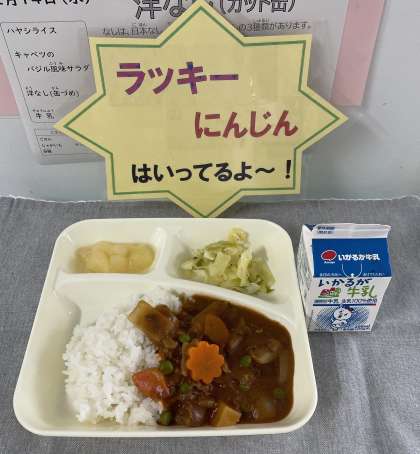 今日は花形のラッキーにんじんが2種類入っています。どんな花形がはいっているかな?