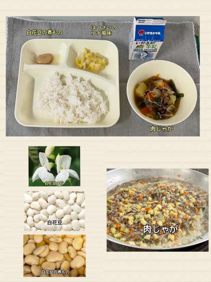 ※肉じゃが ※はくさいのゆず風味 ※白花豆