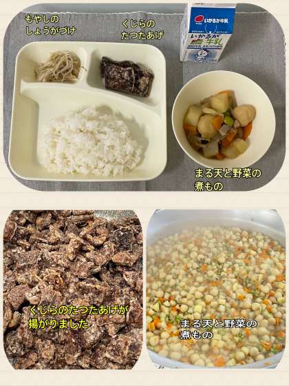 ※くじらのたつたあげ ※まる天と野菜の煮物