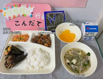 6年生の皆さん、卒業おめでとうございます。今日は6年生の卒業をお祝いする気持ちが込められている卒業祝い献立です。
