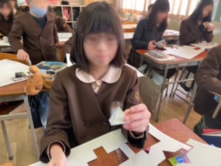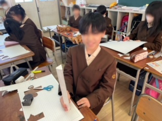 工作用紙に展開図を描き、立体を作ります。