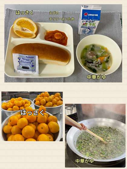 ※えびのチリソースいため ※中華がゆ ※はっさく