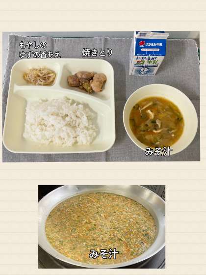 ※やきとり ※みそ汁 ※もやしのゆずの香あえ