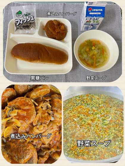 ※煮込みハンバーグ ※野菜スープ ※ミニフィッシュ