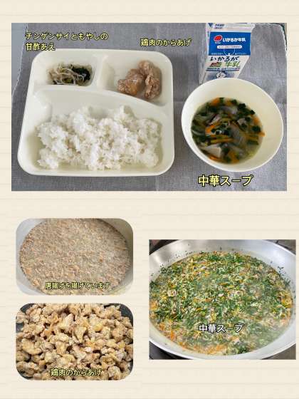 給食では鶏肉のからげと鶏肉のたつたあげが登場します。今日のからあげは、しょうが汁・にんにく・塩・こしょうで下味をつけて、でん粉をまぶして揚げます。ハンバーグ、からあげと児童の好きな献立が続き、明日はきんぴらちらし、すまし汁、ちまきのこどもの日の行事献立です。楽しみですね。