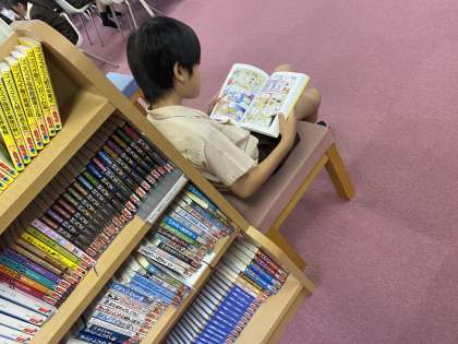 係の友達が紙芝居を読んだり、友達と一緒に本を読んだり、お気に入りの場所で読んだりする姿が見られました。