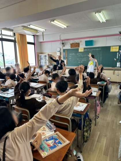 今日は英語の学習でC-netの先生が来る日です。元気のよい英語が聞こえてきました。
