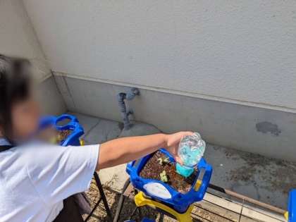 朝顔の芽が出ました!毎日欠かさずに水をあげています。早く大きくなーれ!