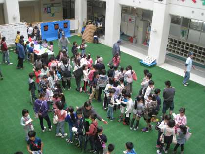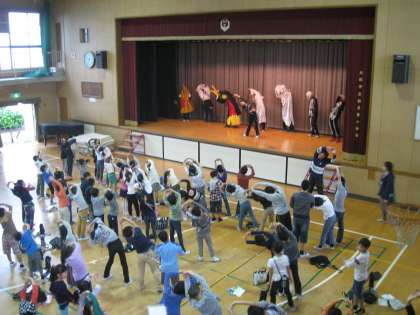 11月15日(日)地域活動協議会とはぐくみネットによる「はぐくみスポーツフェスタ」が今年も本校で行われました。早朝から子ども会、スポーツ推進、体育厚生協会、青少年指導員、青少年福祉委員、PTA等の方々が準備をしていただき、9:30の準備体操には約300人の子どもたちや保護者の方が集まりました。さあ準備体操を始めようとすると、舞台の体操の先生の横に、コロ先生やゾンビたちが次々と現れました。一緒に体操をしたり、じゃんけん列車やボール送りをして楽しんだ後、活動が始まりました。ストライクアウト、ドッジビー、風船バレー、タスポニー、スピードスタックス、マグダーツなどどれも楽しいものばかりです。子どもたちはいろいろ回りながらスタンプを集めていき、最後にアンケートを書いて、お菓子をもらって嬉しそうに帰っていきました。午後からは良いお天気になって運動場でドッジボールもできたので、午前に続けて午後も来ている子がたくさんいました。秋の楽しい一日を作ってくださった地域、PTAの皆様ありがとうございました。