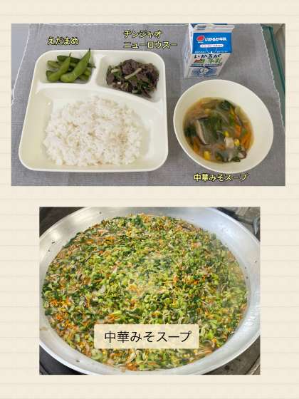 ※チンジャオニューロウスー ※中華みそスープ ※えだまめ