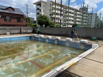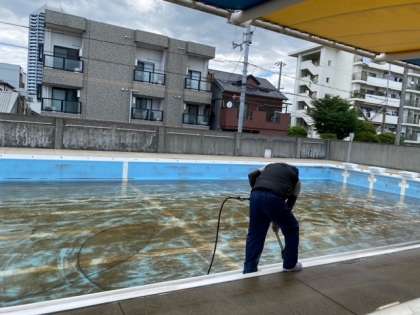 6月17日のプール開きに向けて業者によるプール清掃を行いました。