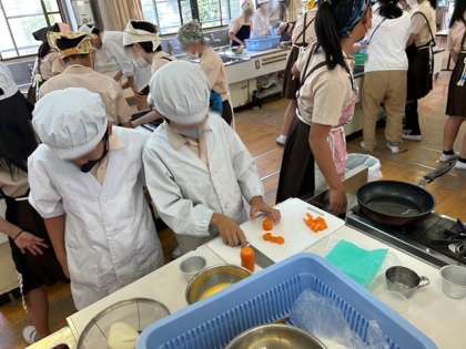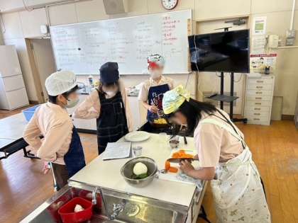 6年生は家庭科で調理実習を行いました。