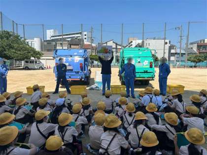 14日の2時間目に、出前授業でパッカー車体験をしました。