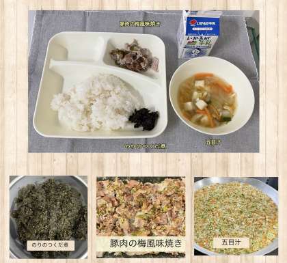 ※豚肉の梅風味焼き ※五目汁 ※のりのつくだ煮