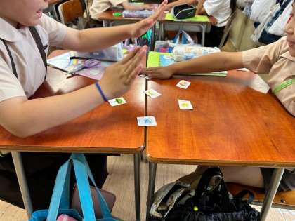 4年生は外国語活動で「曜日」の学習をしました。Sunday Monday・・・ですね。月曜日から金曜日まで英語で言います。最後は、黒崎先生が言った曜日でカルタをしました。