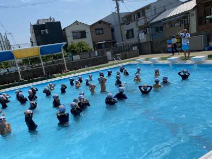 たくさん作ったてるてる坊主の効果もあり、今日は絶好のプール日和でした。
