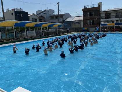 クロールの泳ぎ方を確かめ、最後は25m泳ぎました。