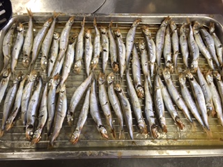 写真右は焼きあがったばかりの、ししゃもの様子です。