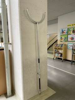 今年度各学年教室近くの廊下に、さすまたを設置しています。いざという時のために危機意識をしっかりと持ち、安全管理に努めていきます。