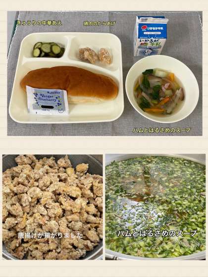 ※鶏肉のからあげ ※ハムとはるさめのスープ ※きゅうりの中華あえ
