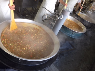 写真中央はビーフカレーライスを煮込んでいる様子です。